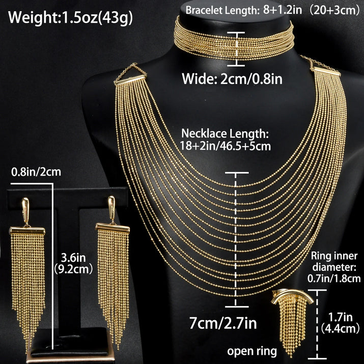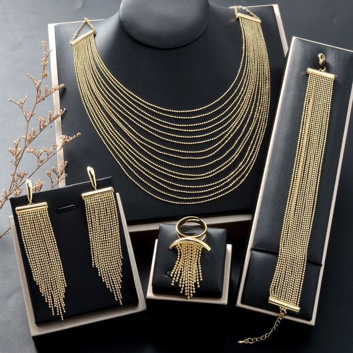 Diana baby Fashion jewelry 18k Gold Plated Tassels Earring Necklace Bracelet Wedding Bride Jewellery Sets For Women Luxury Gift