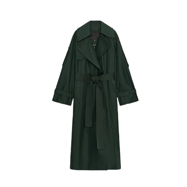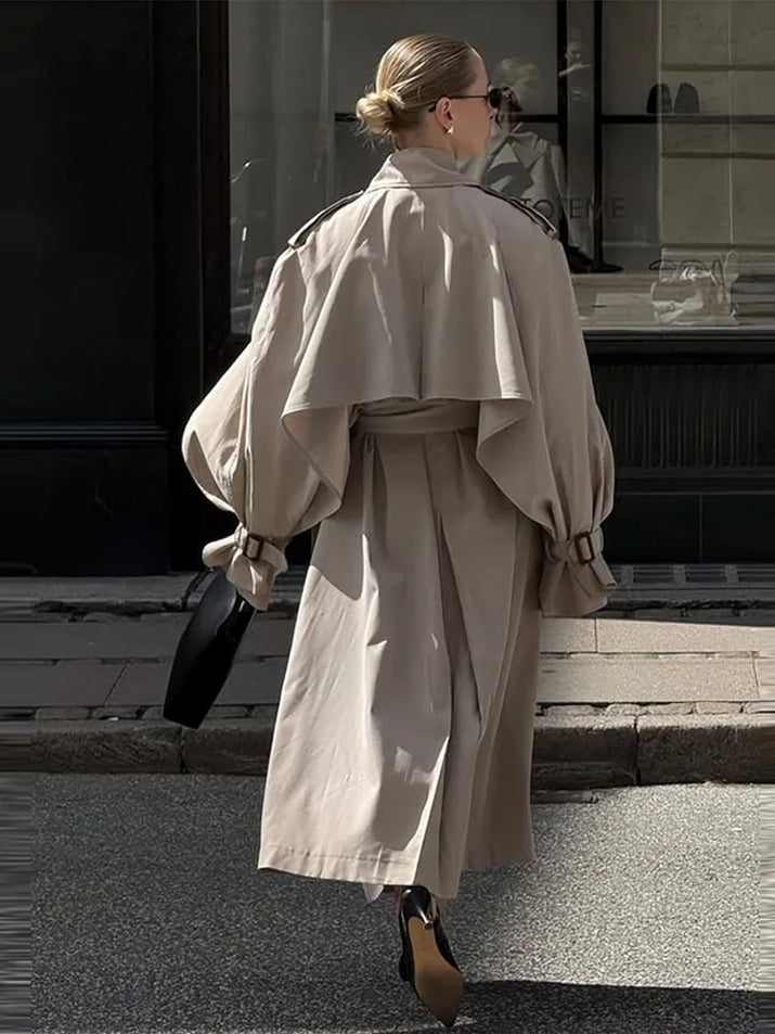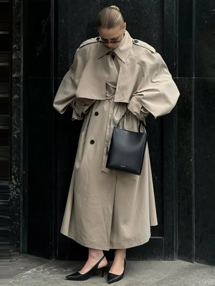 Elegant Lapel Long Windbreakers Women Patchwork Double Breasted Lace Up Oversize Trench Coat 2025 Autumn Street Lady Outerwears