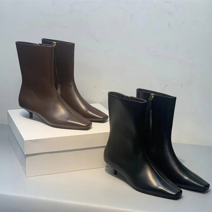 FEDONAS 2025 New Genuine Leather Ankle Boots For Women Kitten High Heels Pumps Leather Elegant Fashion Street Short Boots Shoes