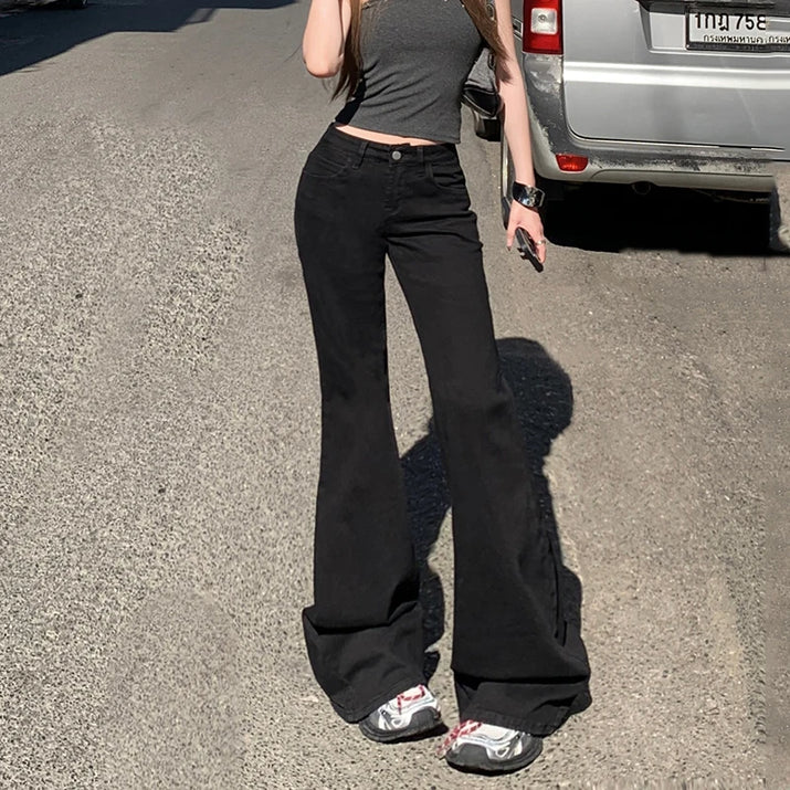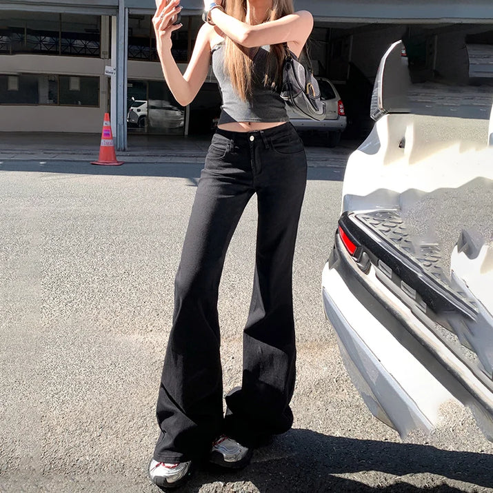 KSTUN 2025 New Low Waist Boot Cut Jeans For Women Fashion Stretch Denim Flared Pants Black Casual Female Bell Bottom Trousers
