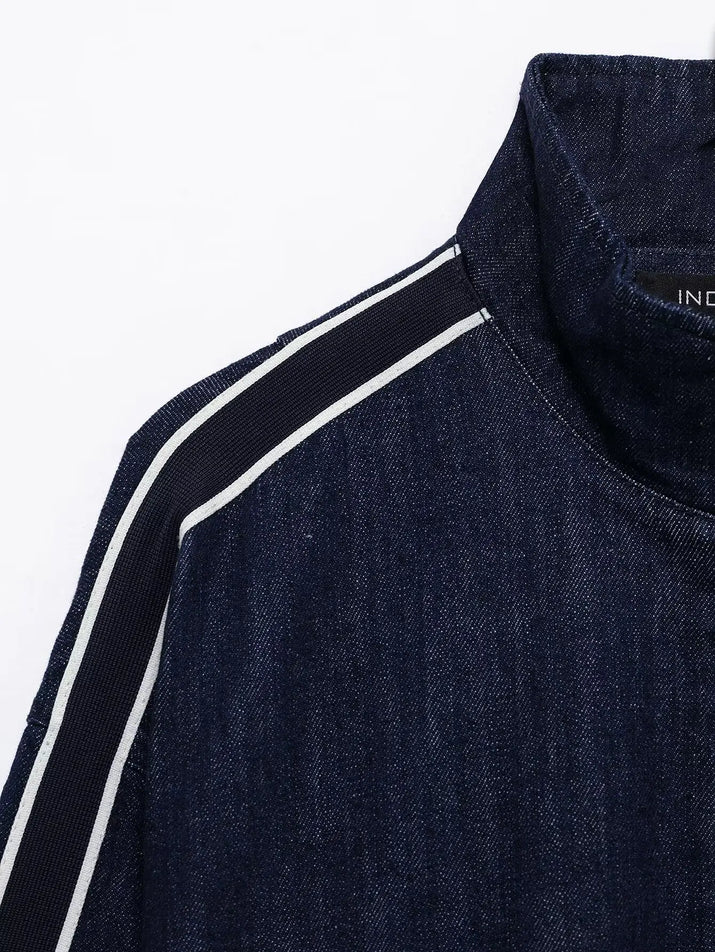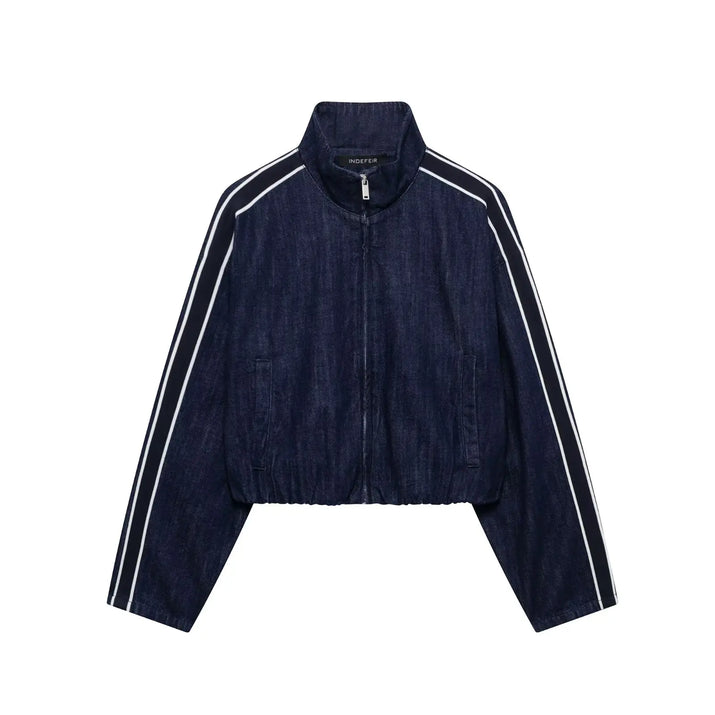 TRAFZA Women High Street Denim Set Side Stripe Stand Collar Zipper Jacket Lace-Up Pant 2025 Autumn Winter Casual Female Set