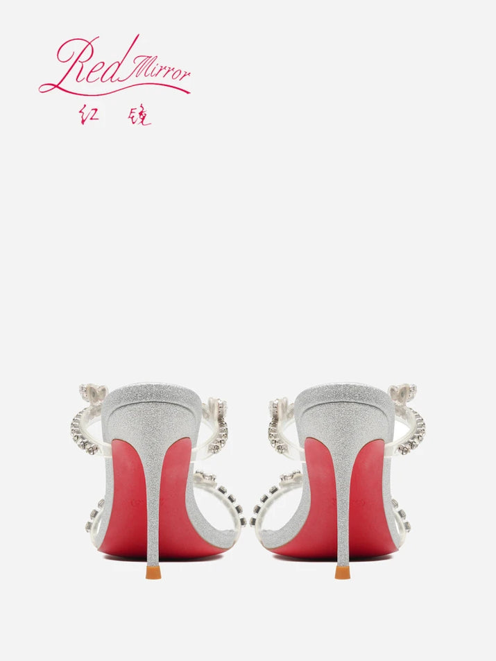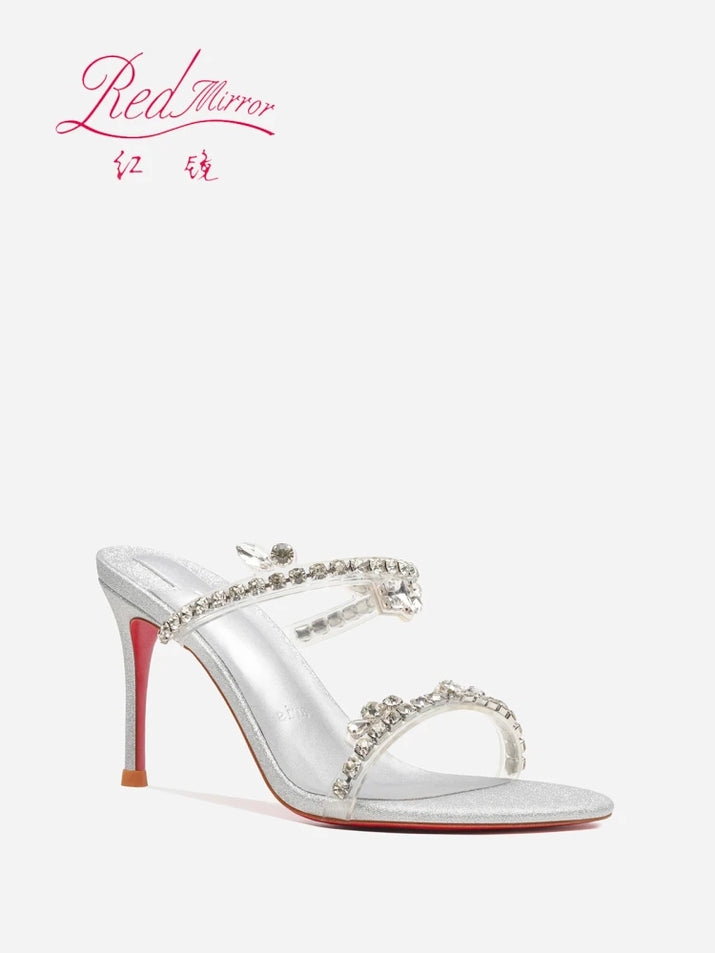 Transparent flat strap sandals for women's summer wear, 2025 new silver rhinestone fairy style queen girl slim heel sandals