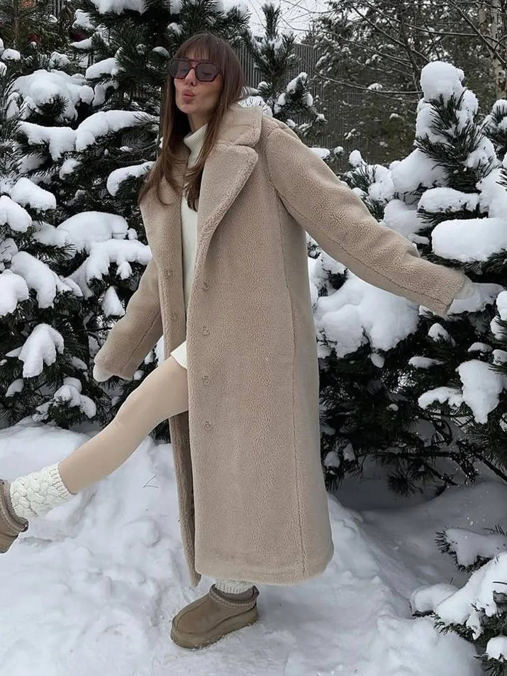 Women Long Coat Turn Down Collar Full Sleeve Thick Warm Y2k Streetwear Elegant Jackets Open Stith Autumn Winter 2025