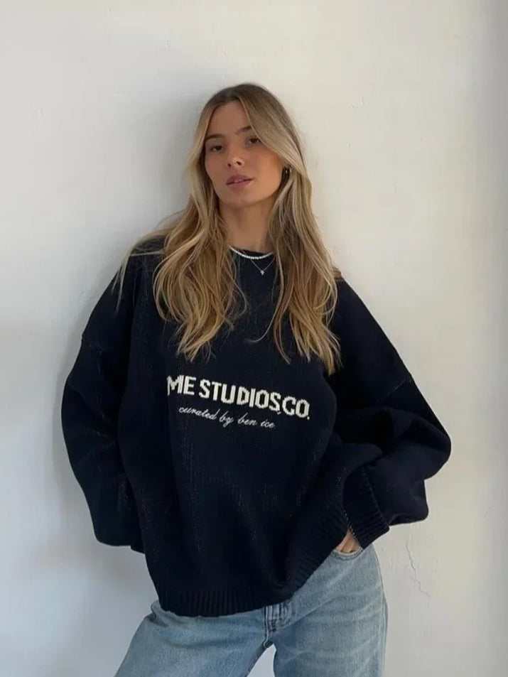 Yellow Knitted Letter Sweater Women Elegant Round Neck Long Sleeve Short Pullover Casual Lady New Street Autumn Holiday Sweaters